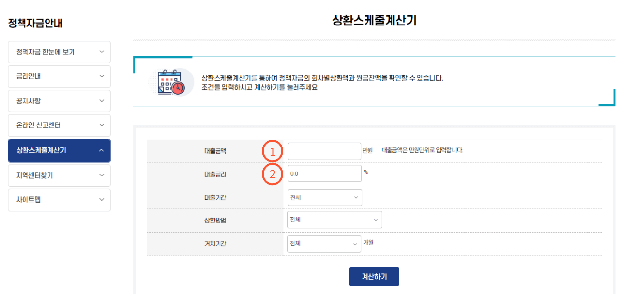 우선, ①에 필요한 대출금액을 입력합니다.